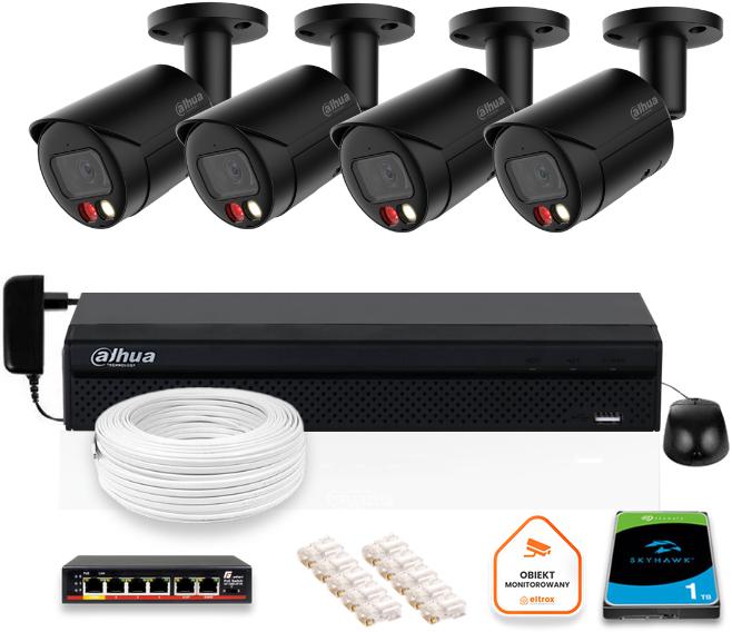 Zestaw monitoringu IP DAHUA 4 kamery tubowe zewnętrzne czarne 8MPX